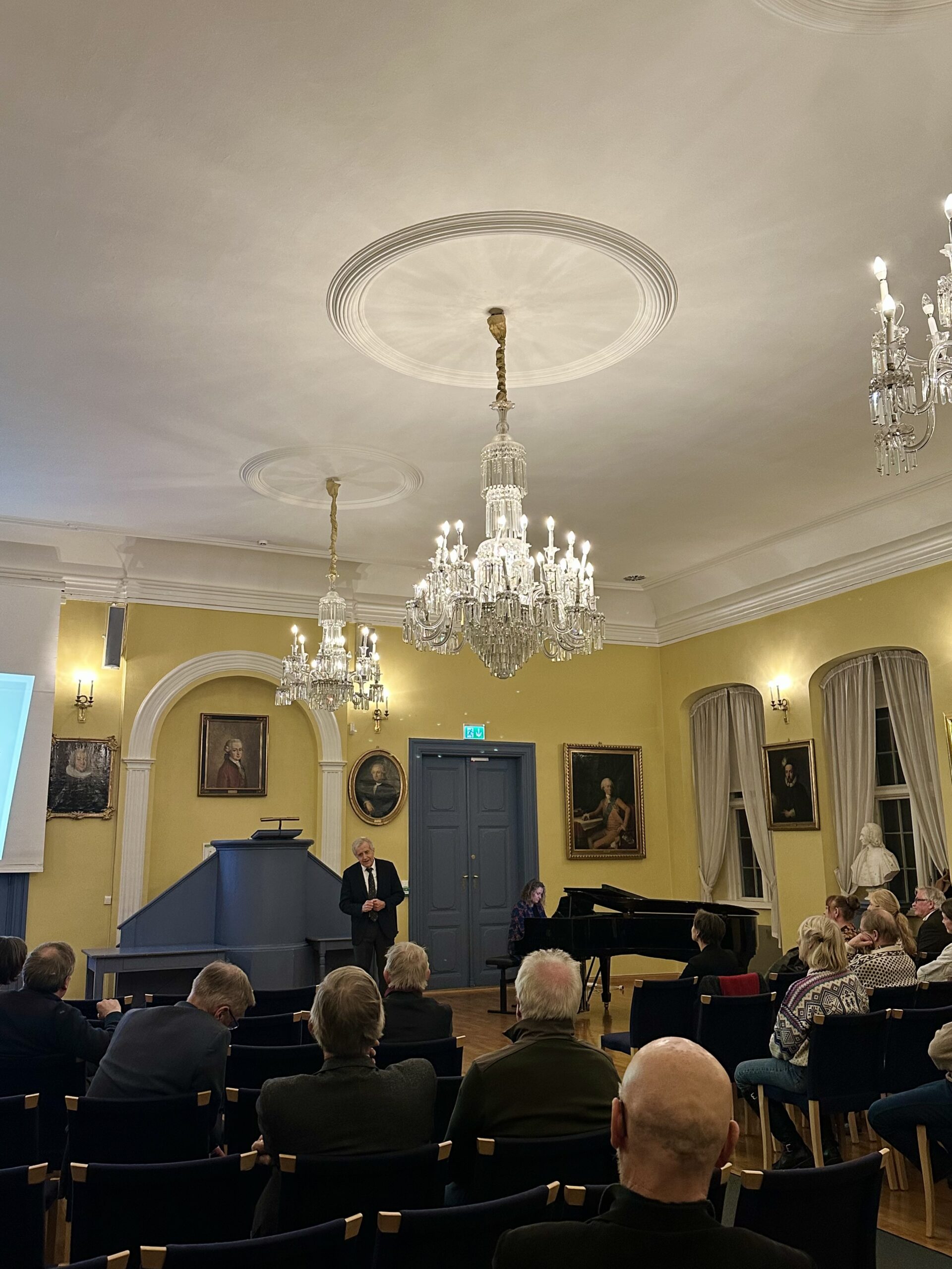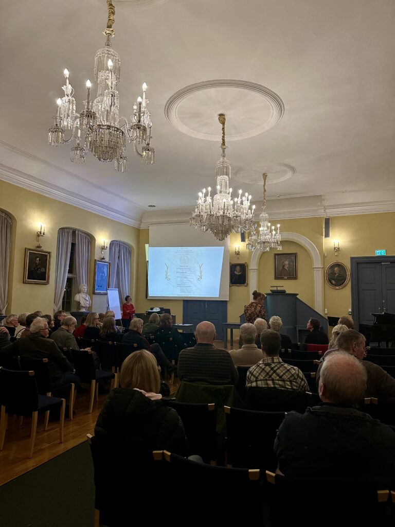 Mandag samlet DKNVS medlemmer og gjester til årets siste akademimøte i Katedralskolens festsal. Kvelden startet med et engasjerende foredrag av professor Ida Bull, som holdt et innsiktsfullt innlegg om Gerhard Schøning. Over 50 deltakere møtte opp for å høre foredraget, som ble svært godt mottatt.
