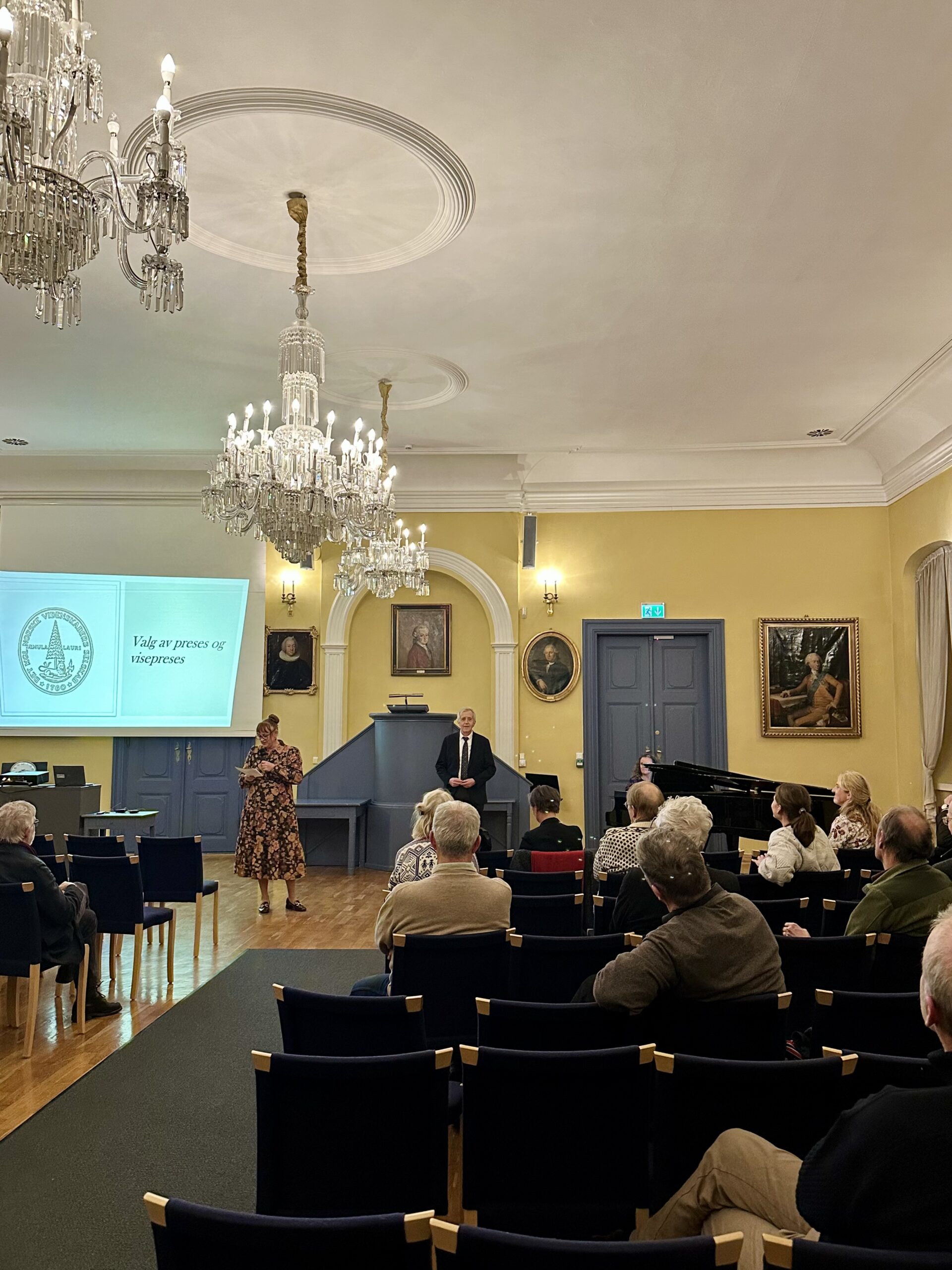 Etter foredraget fulgte et fellesmøte for medlemmene. Rundt 30 medlemmer deltok, og preses orienterte blant annet om styrets arbeid det siste året. Det ble også gjennomført valg av ny preses og visepreses, og vi gratulerer Asta Kristine Håberg og Geir Arild Espnes med sine nye verv fra og med 2026.